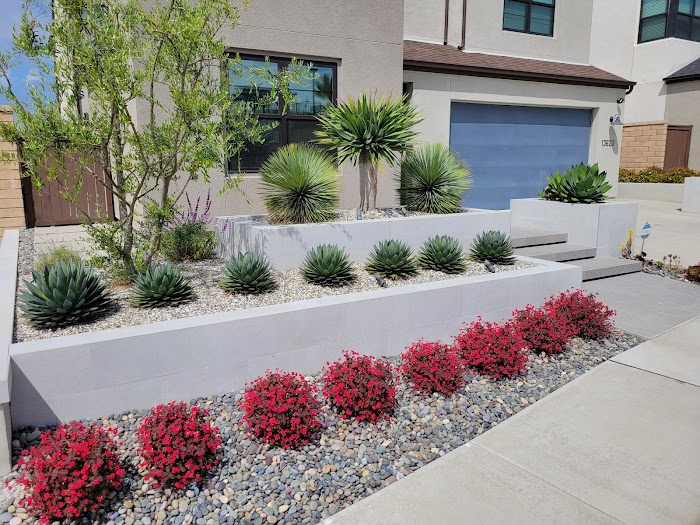 This is an overdue review. Del Mar Landscapes did a fantastic job installing our front patio living concept. It was a significant job to install a retaining wall, a modern horizontal fence, concrete pathways and a patio, a planter box, drainage, and pergola installation. The team was professional, arrived on time, hardworking, and easy to work with. We are very pleased with the result and received many compliments from our neighbors.