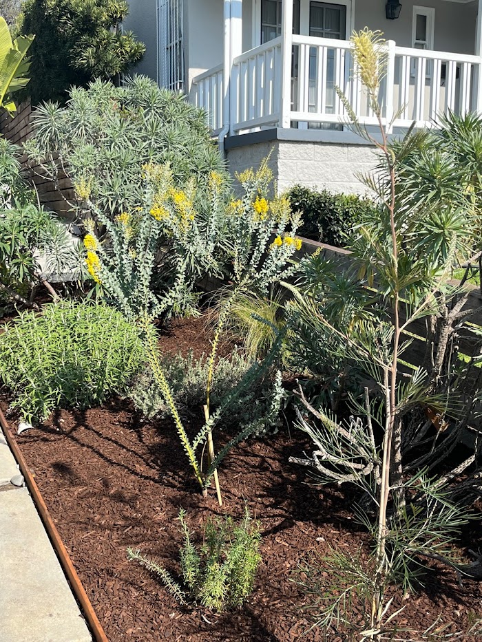 All plants are drought tolerant and California native, and he was able to install an efficient drip system, so the garden is quite self-sustainable and requires little maintenance. Thank you Fuzzyscape!!