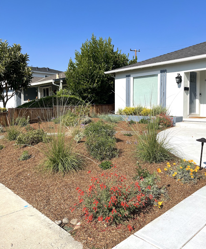We came in with some plant and layout ideas, and Bianca adapted to our project needs— a low water, mostly CA native landscape that mirrored our love of the scenery we see on Bay Area hikes. She quickly provided expert guidance and new ideas, materials suggestions and alternate plants to better meet our practical and aesthetic goals, contractor recommendations, etc. It’s only been 3 months since installation, but already it’s provided my husband and I so much daily joy to see the yard brimming with bees, hummingbirds, and monarch butterflies. We loved working with her and would absolutely recommend!