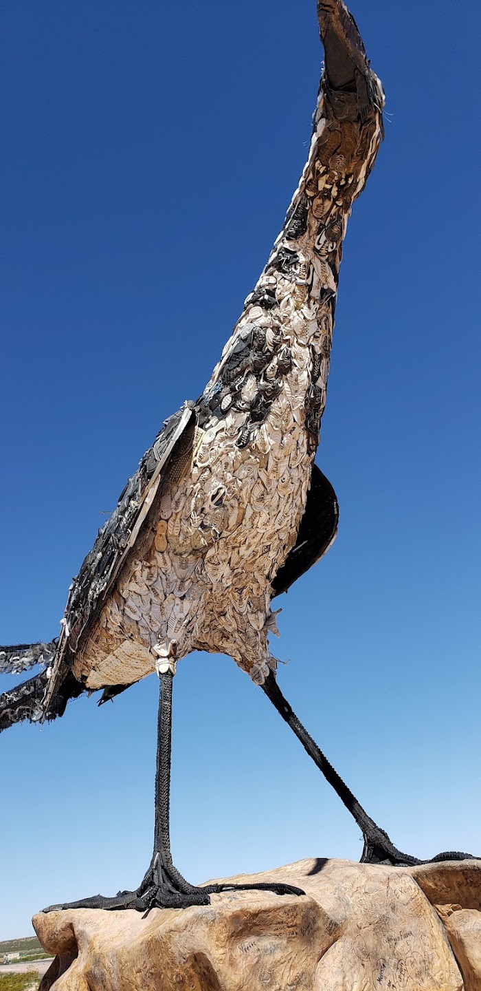 This is a very nice rest stop with the World’s Largest Roadrunner. The Roadrunner is made out of recycled materials like crutches, cd changers, var lights for eyes and lots and lots of tennis shoes. He’s so interesting to look at. A great piece of art. Worth a stop to see!
