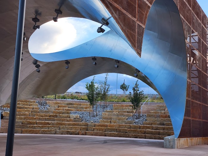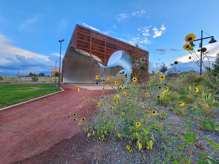 Rio Rancho City Center area off Unser. Park near event center, city hall, UNM, HP, CNM buildings. It was empty on holiday. Website said dog friendly but there was a sign stating dogs not allowed on developed areas. Not sure what that means. There was a bathroom but it was locked. But overall enjoyed the wide open space with lots of parking and Sandia views.