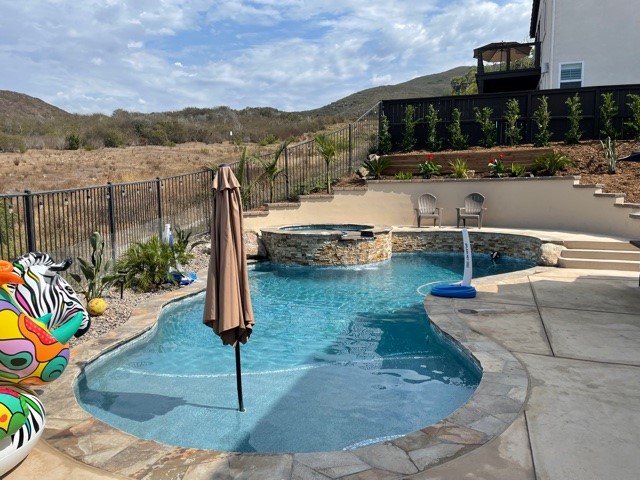 It still took another month before we could go into the pool. I had it set up for Saltwater, so it took a little longer to establish the right water concertation. The pool is great and is very enjoyable as of today! Thank you to all the workers who worked hard in getting this project completed. Thank you, San Diego Pools, for creating a very cool pool!