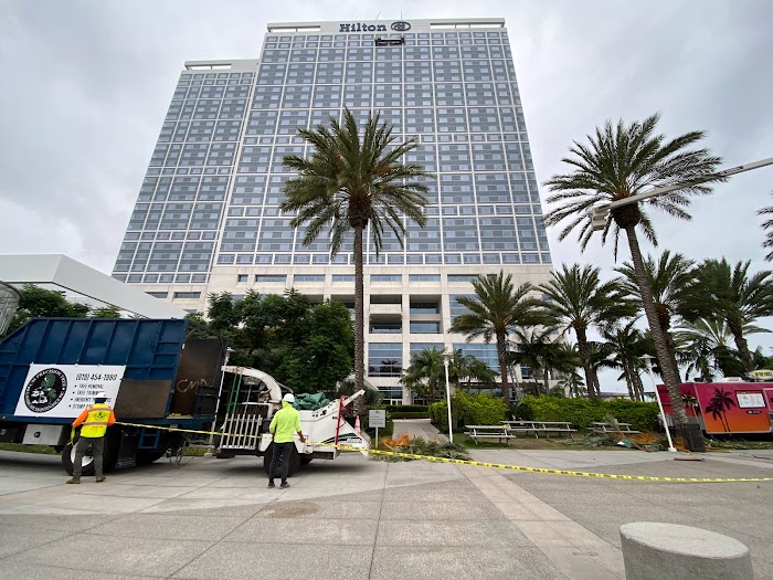 Because it went so well, I had them come out to my house where they removed a huge palm tree that was about a foot from a fence and 15’ from our garage. It was amazing watching them take it down in such a small space. They took out a couple trees that were up against our garage, trimmed some others with skilled precision in making the limbs fall in a very narrow spot, and ground multiple stumps. They cleaned everything up and blew off the hard surfaces. Everything looked fantastic. Pedro even called the next day to make sure it was all done to my satisfaction. They were great!