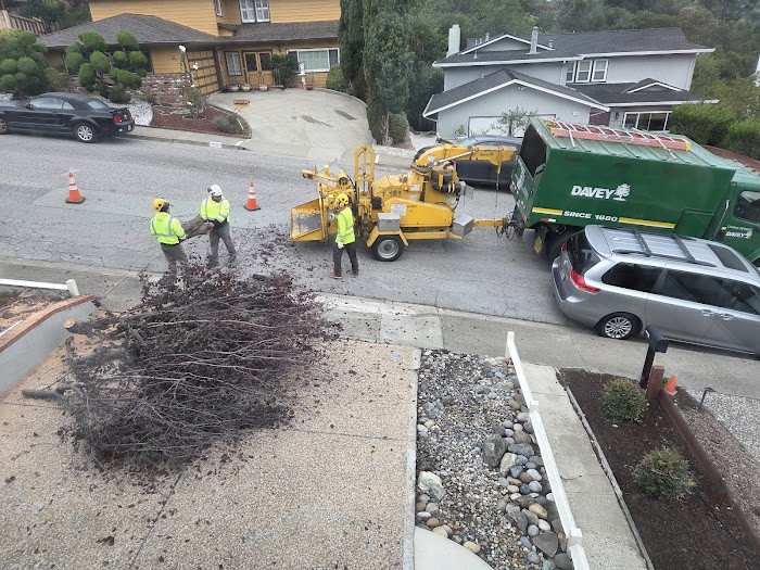 The Davey Tree Expert Co. was contracted to remove a fallen Aleppo Pine tree from our backyard. This project was complex and large in size. Adam, from Davey Tree, wrote a detailed project report indicating what needs to be done, which included renting crane and working with the City of Belmont to acquire all necessary permits including the closure of the street below us.